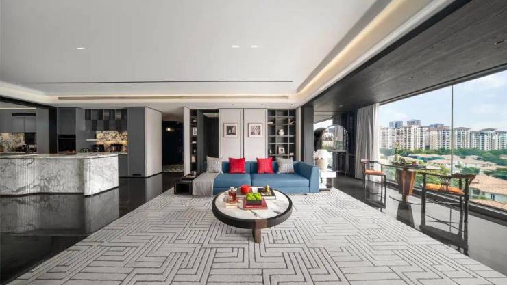 在此之上,我们为高净值家庭定制了专属居所—约165㎡/186㎡的墅景宽幕大平层。