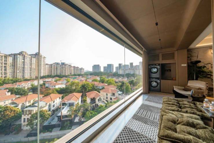 约8.3米跑道式阳台,不是单纯的晾晒空间,而是一座“云端观景台”。