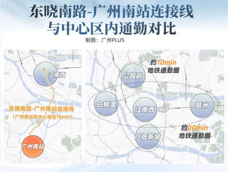 今年即将开通的广佛环线,则再让广州南站和白云机场的距离缩短至约30分钟(来源:番禺台),甚至无缝切换至琶洲CBD。