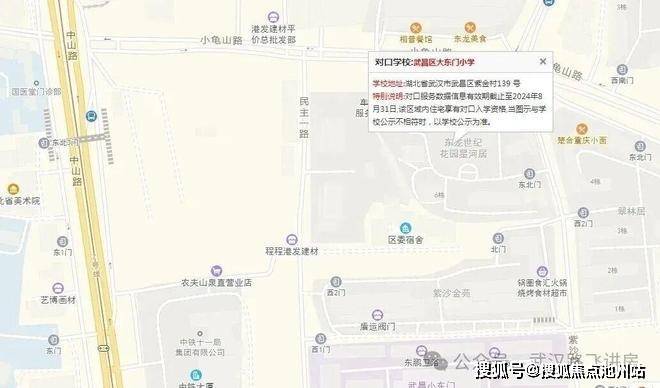 教育:项目规划中包含一所 6 班制幼儿园,可满足业主基础入园需求。根据学区划片,该项目对口的小学为中山路小学紫金分校(其前身为大东门小学),初中则对口武汉市第二十五中。