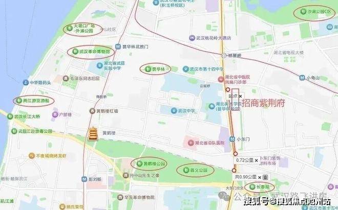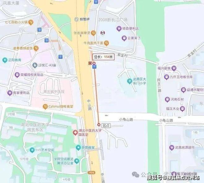 项目位于武昌区中山路与小龟山路交汇处,属于武昌内环。从板块来看,项目属于武昌核心螃蟹岬,沙湖汉街板块直线距离约800米,与中南路直线距离约1.7公里。