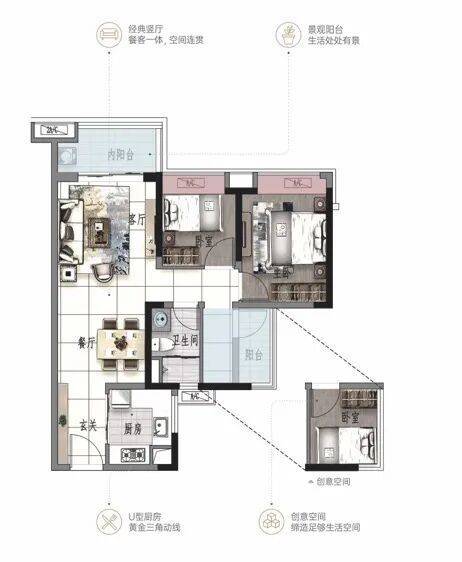 ③景观大阳台连通次卧