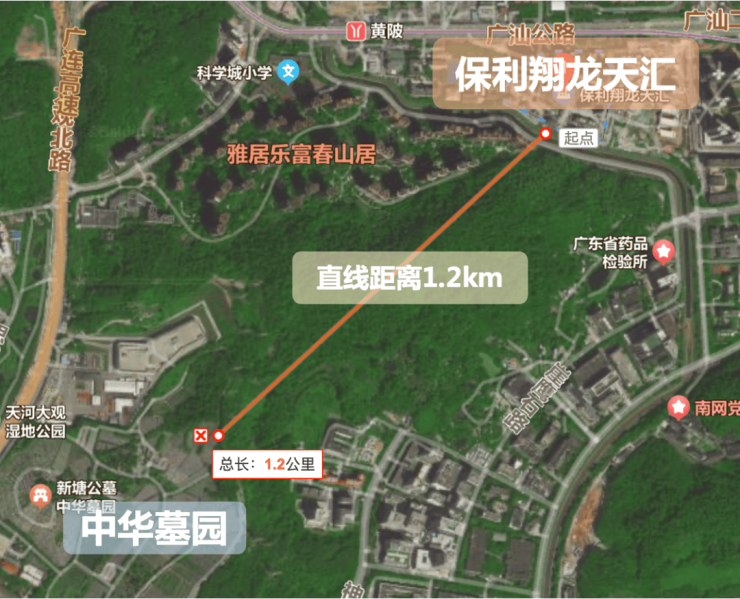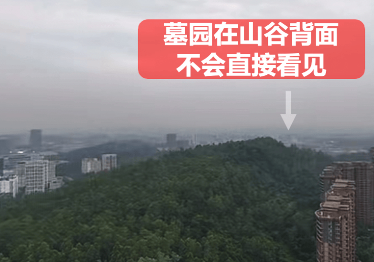 1、楼盘的西南向1.2公里有墓园,部分小伙伴对这块有点膈应,但是墓园是在山谷背面,不会直接撞见,特别是叠墅就几层楼的高度,更看不见