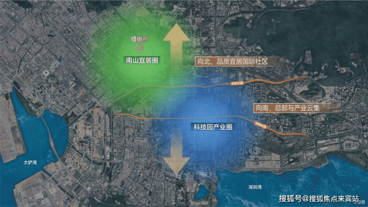 缙樾府落位深湾核芯,周边三轴拱卫,深圳五大顶级总部基地环绕,联动西丽高铁新城增长极,形成立基于深湾之上的产业价值能级跃升。