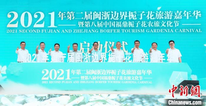 中新网宁德5月29日电 (记者 叶茂)以“花开闽浙、栀等你来”为主题的2021年第二届闽浙边界栀子花旅游嘉年华暨第八届中国福鼎栀子花农旅文化节,29日在“中国栀子文化小镇”福建福鼎市贯岭镇分水关村启动,进一步展示栀子花海及栀子文化魅力,推动栀子产业发展。