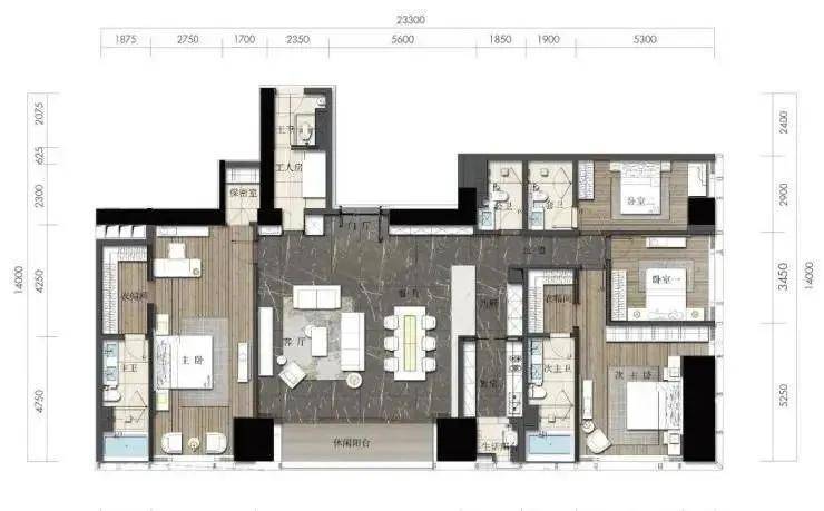 约164㎡2房2厅2卫(独立入户玄关,动静分离,约33㎡豪华主卧,承载品质生活)