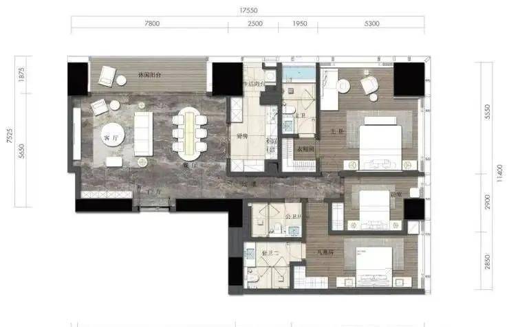 约223㎡3房2厅3卫(约7.8米阔绰横厅链接景观阳台)