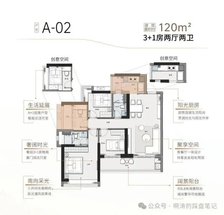 A-02 建筑面积约120㎡ 3+1房两厅两卫