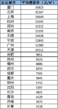 与之相比,深圳、福州、青岛分别以138亿、135亿、121亿的土地成交额,位列倒数后三位。