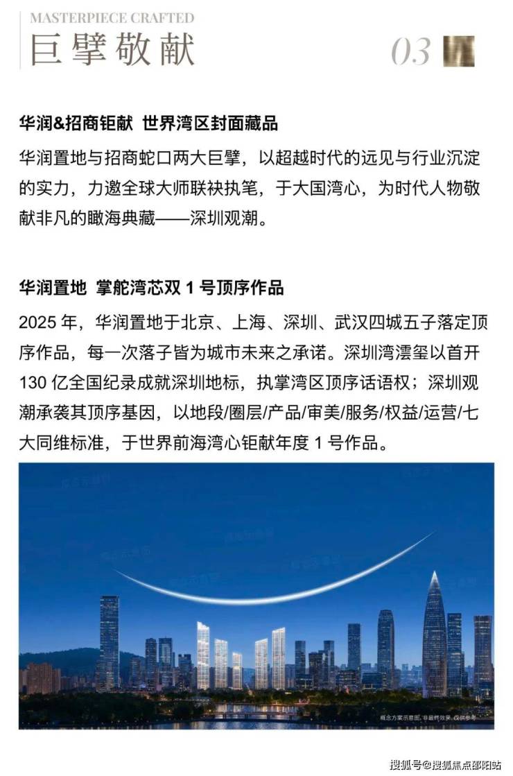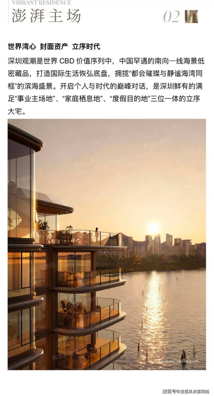 深圳观潮是华润置地与招商蛇口两大行业巨擘,力邀全球大师执笔,于大国湾心联袂钜献的1号作品,是全球CBD价值序列中,中国罕遇的南向一线海景低密藏品。