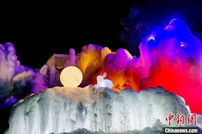 中新网兰州11月15日电(艾庆龙 韩玉良)冬日,西北山区寒风凛冽。走近甘肃临夏州积石山县的大墩峡,往日流水潺潺的河流凝结冰柱,宛如一条“玉带”盘绕奇峰之上,在霓虹灯照射下,颇有仙境之感。近些年,随着“西北游”的兴起,曾一度“无人问津”地区,成为“宝藏”之地,让都市人携家带口前来“探宝”,体验民族风情。