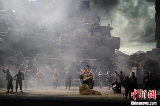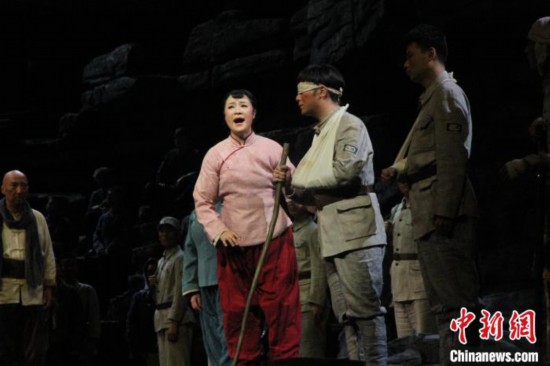 第四届中国歌剧节10月13日晚在山东济南开幕,大型民族歌剧《沂蒙山》上演。 吕妍 摄