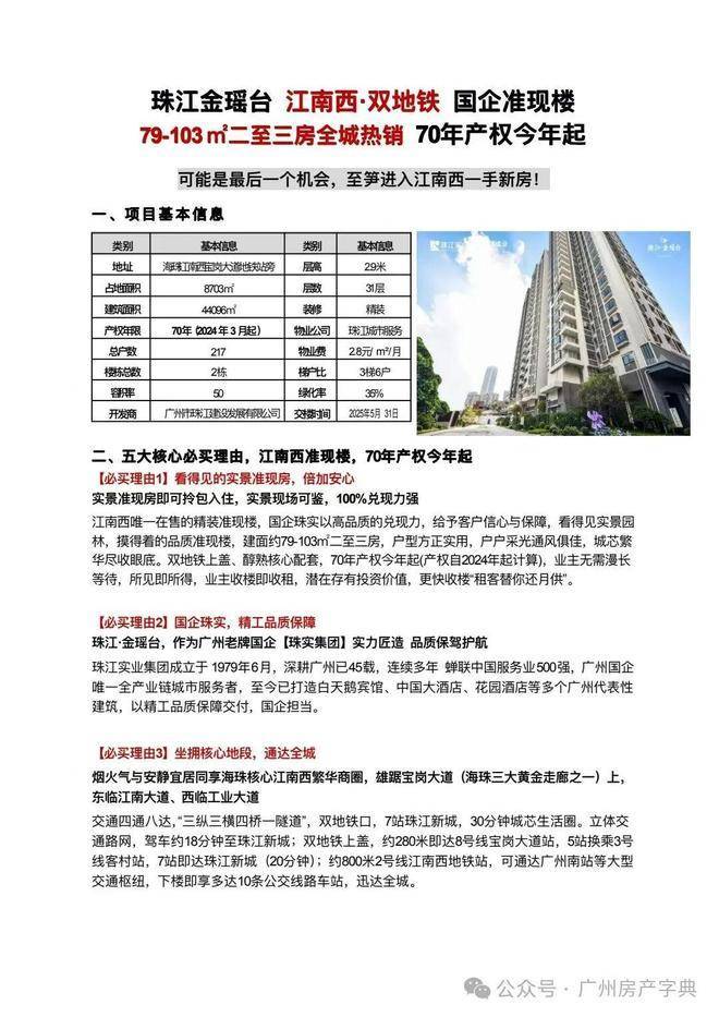 江南西板块十年断供,板块内一手住宅仅此珠江金瑶台,足见项目稀缺属性;