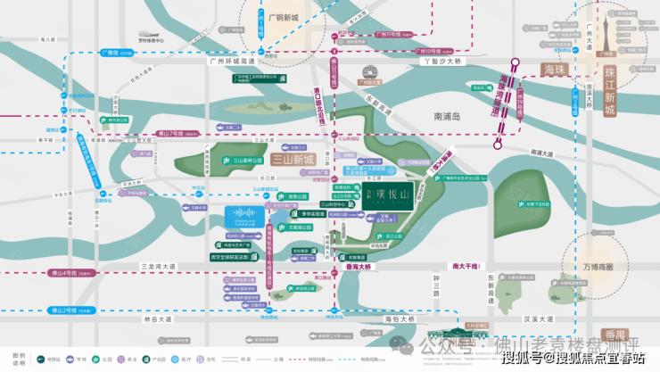 项目地址:佛山南海桂城街道三山新城环岛东路 8 号,三龙湾科创核心区、千灯湖东拓临广板块