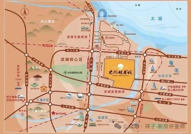 继月亮酒店地标之后,又一城市新地标风帆酒店(预计2025年完工),总投资约15亿元,将成为南太湖旅游产业发展的新旗舰。(信息来源:南太湖发布) 同时,如通苏湖城际铁路(已开工,预计2027年建成)的加速建设,将串联起环沪城市圈之间产业、人口和城市发展红利,也让湖州城市能级加速向上跃升。 千亩社区 百亿配套 太湖健康城总建约200万方,总占地约2000余亩,总投资超200亿元,拥有高达50%的产业自持物业比例。