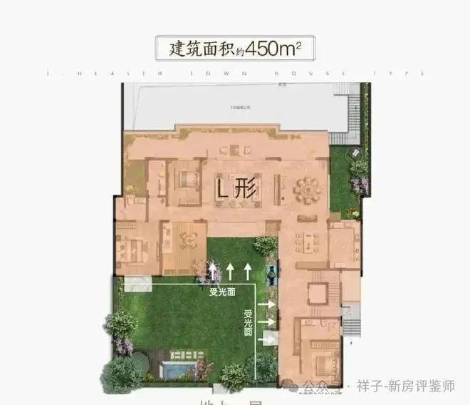 而不同于传统排屋,太湖健康城合院独立墅区规划,L型的“外形”使其比联排多了一个采光面,生活更向阳。 270°环抱式庭院、采用实体围墙围合,提供了对外界比较隐秘的空间,私密性更佳;为了采光的极致化,南向最大做到了近24m的大面宽,将庭院美景延绵至厅堂内,让合院和自然完美相融。 太湖健康城合院,以客户的居住体验感为出发点,地面只做两层建筑形制——要知道,地上建面越少,自然越值钱。
