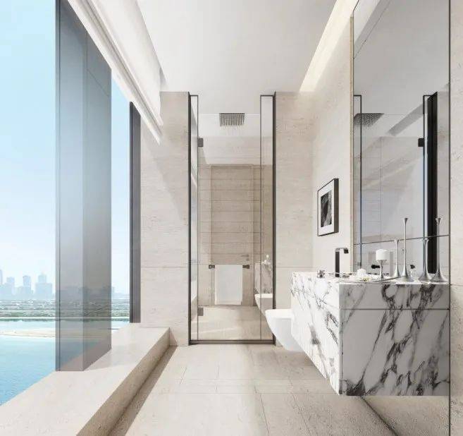 俯瞰窗外即是海量商业群像共绘的高定奢尚生活场——距离SKP仅900米,窗景就是杭州「海拔」最高的城市封面,比邻奥体印象城、Costco等商业中心,望朝中心、博地中心等高端写字楼分布在侧,以及自带5000方精致商业街区,繁华永不落幕。