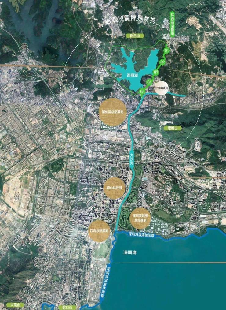 【一方湖山大境】三山环抱,一湖为邻,西丽湖一线景观资源,千万顷珍稀原生资源,造就一席湖山大境;14公里西丽湖环湖栈道+13.7公里大沙河生态走廊+34公里深圳湾环湖栈道,汇聚城市自然资源标地,山河湖海城市绿脊。