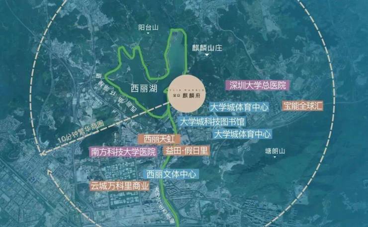南山西丽繁华主场,十分钟内益田假日里、宝能全球汇、万科云城里等20万㎡商业;共享大学城文体配套,优质国际教育;三大地铁交汇,两大高铁站相邻,五横四纵交通路网,半小时辐射全深圳。