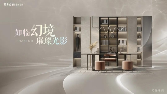 索菲亚幻影系列灵感来自梵高的笔触,将油画笔触感与岩纹两大元素成功运用到产品外观设计,使幻影系列极具艺术气息。幻影系列板材使用了高级UV涂层,高光OR肤感可随心选择,再多一层的膜压工艺,让产品手感更舒滑。珠光粉工艺加入到饰面印刷中,门板呈现出晶莹剔透的珠光效果,轻松打造人们低调舒适又不失高雅的生活体验。