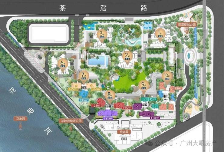 拥有花地河绿道公园、榕诚公园、铁路文化公园(规划)和花境公园(规划)四大公园环绕,鲜氧聚集。