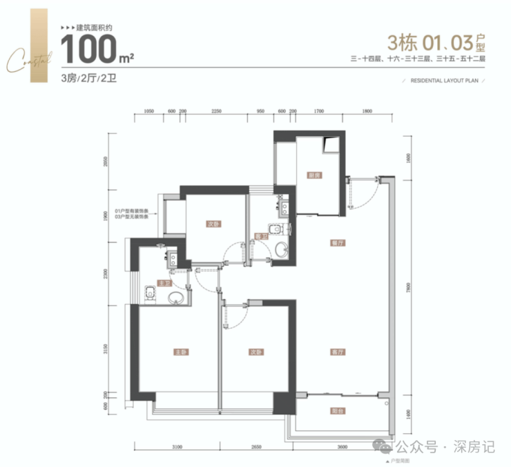 【约100㎡三房两厅两卫户型鉴赏】