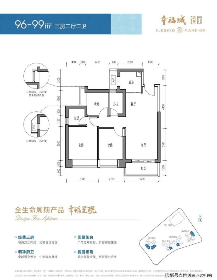 建面约96-99㎡3房2厅2卫