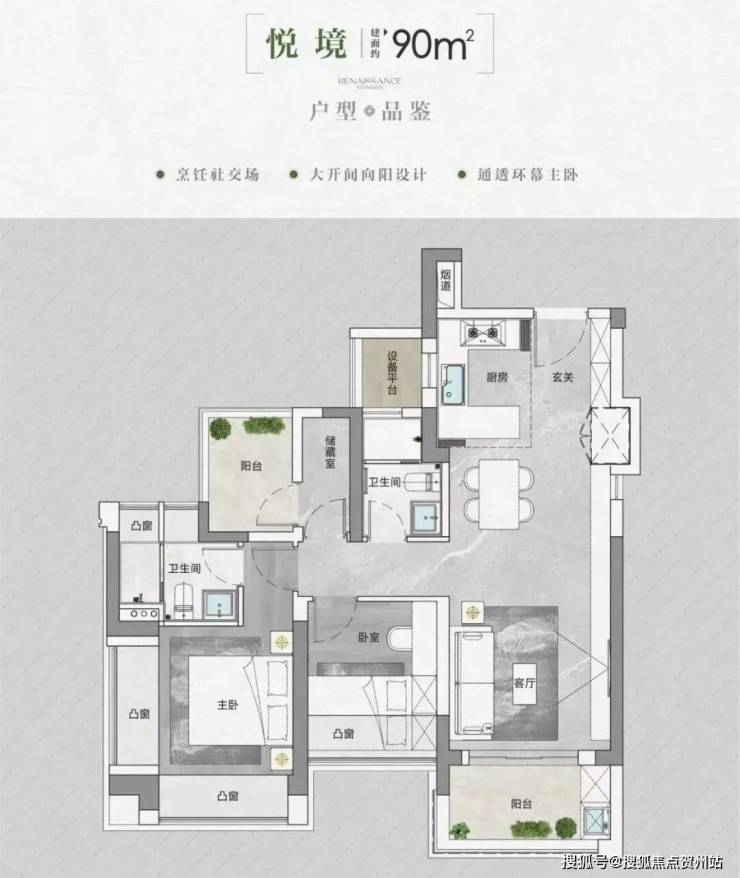 • 得房率:通过创新性的飘窗、双阳台改造、设备平台赠送等设计,实现平均94-96%的惊人得房率。