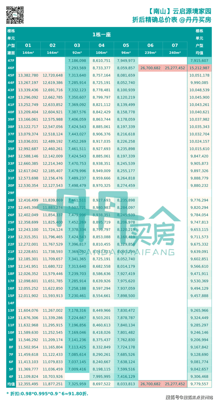 南山,中海云启源境本次将推出1栋1/2单元,共298套房源,面积有90-95-105㎡的3房2厅2卫,143㎡的4房2厅2卫户型,还有2套顶楼复式229平