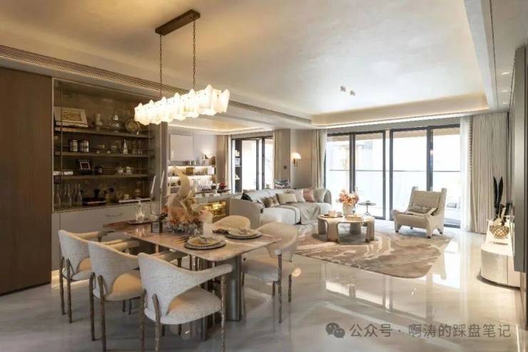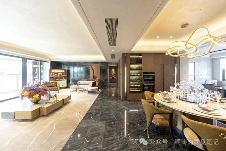 比如,建面约150㎡户型,空间感可媲美约200㎡传统大平层,若将客厅与旁边次卧打通,更可形成近8米的超阔聚厅。