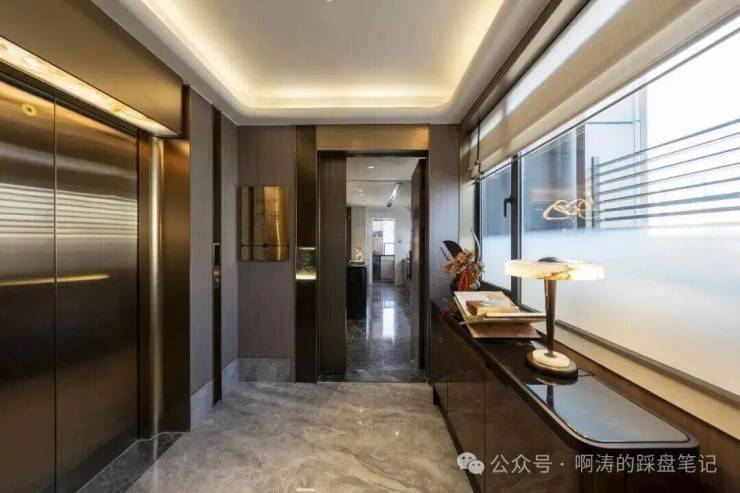 从电梯出来的过渡空间,可作为“前庭”,展示个人喜好,也可做收纳空间,装下雨伞钥匙高尔夫球杆等,安放生活的琐碎。