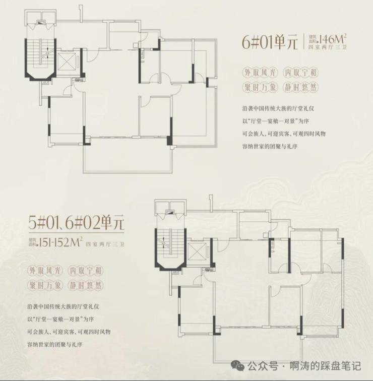 项目主推的建面约150-175㎡产品,专梯专户,隐私尊贵感足。