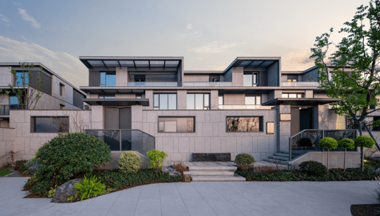 全维实景呈现眼前,无论是建筑、街巷、庭院、园林,颜值与品质都超出预期。第一眼打量,它让我想起的是一个时髦形容词:松弛感。仅87户住家的园区,就配置了双大门,进出动线和地块型制一样,沿江岸线充分舒展,更兼0.55容积率加持,远非大多数“摩肩接踵”的城市低密可比。