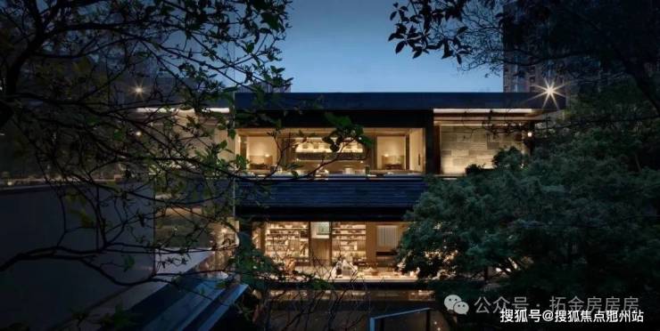 凤栖逸庐的“隐”,是在繁华都市中藏起喧嚣。项目以《浮玉山居图》为灵感,建筑采用“屋檐、屋身、台基”三段式古典构图,大面玻璃与飞檐结合,呈现“轻盈悬浮”视觉效果,兼具东方仪式感与现代极简美学。