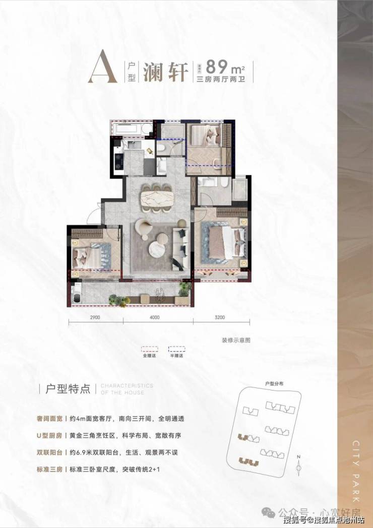 户型面积:建筑面积约89-146㎡