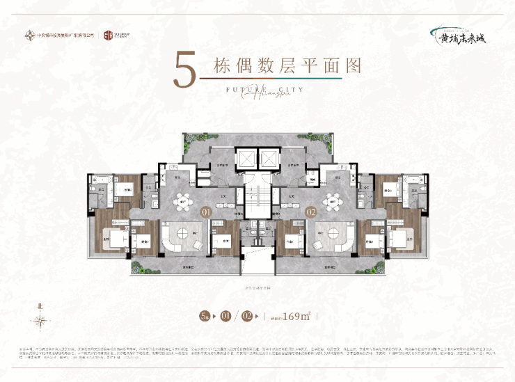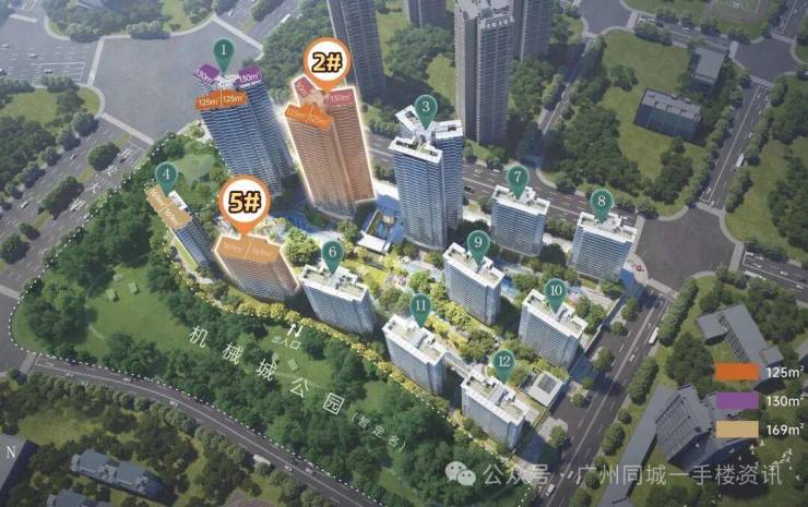 5栋为专梯专户、南北通透的纯板式约16层小高层板楼,主推建面约169平大户型,直面公园。