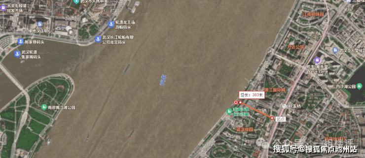 首先是离江距离和对岸视野:该项目到武昌江滩直线距离约300米左右,算不上一线江景房。