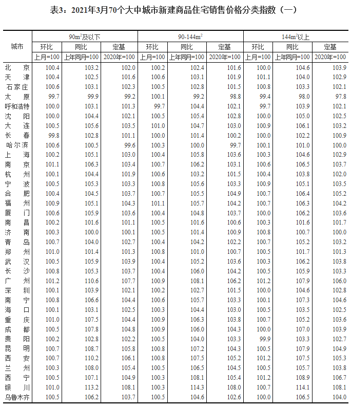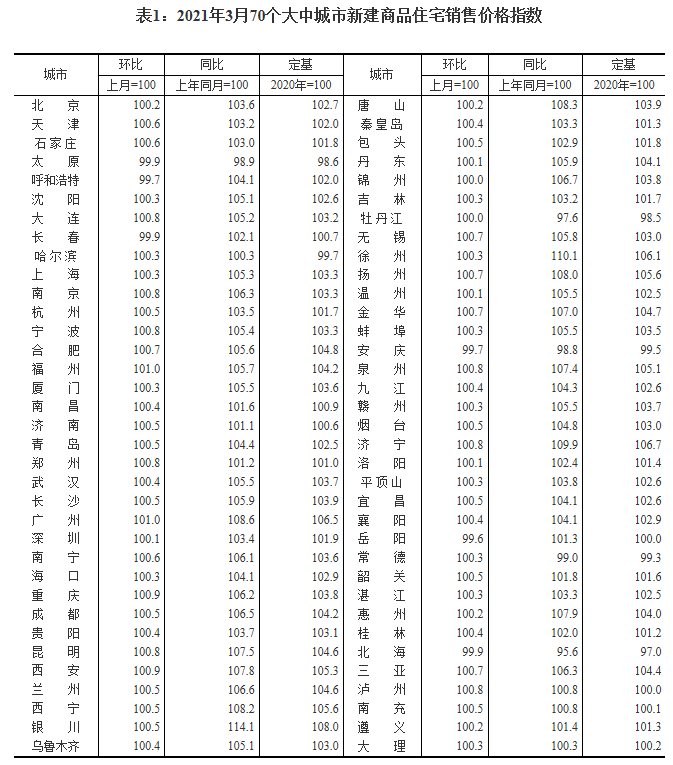 国家统计局网站4月16日发布2021年3月份70个大中城市商品住宅销售价格变动情况,数据显示,62城新房价格环比上涨,其中广州、福州上涨1.0%领跑。