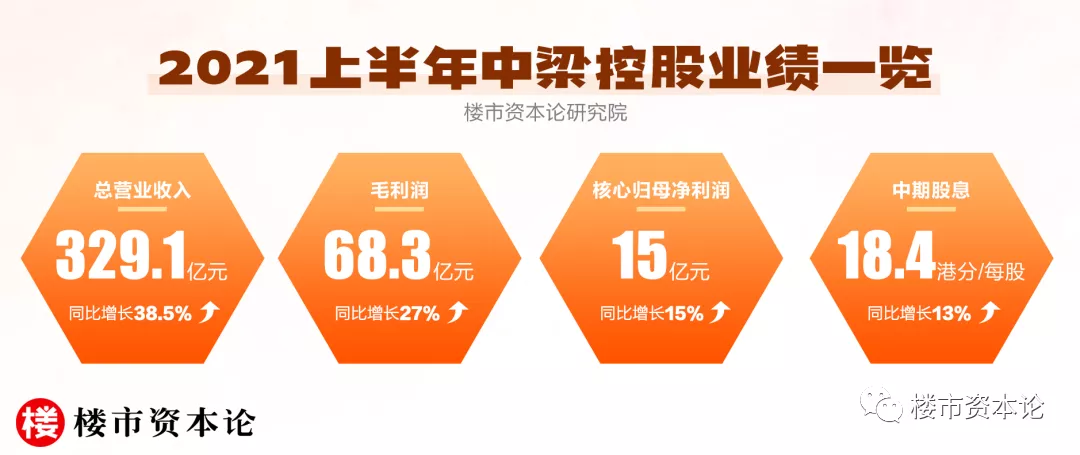 今年上半年,中梁实现总营业收入329亿元,同比增长38.5%,毛利润68.3亿元,同比增长27%。