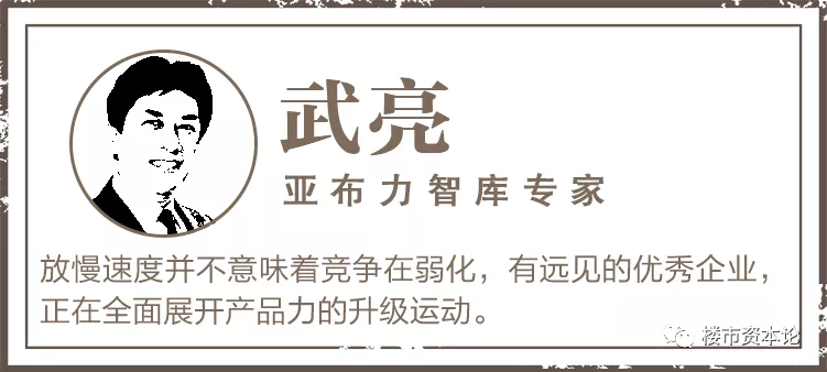 亚布力智库研究员武亮表示,随着供需关系迈过平衡点,以及楼市调控的常态化,房企真正进入产品层面的同题竞争;放慢速度并不意味着竞争在弱化,有远见的优秀企业,正在全面展开产品力的升级运动。