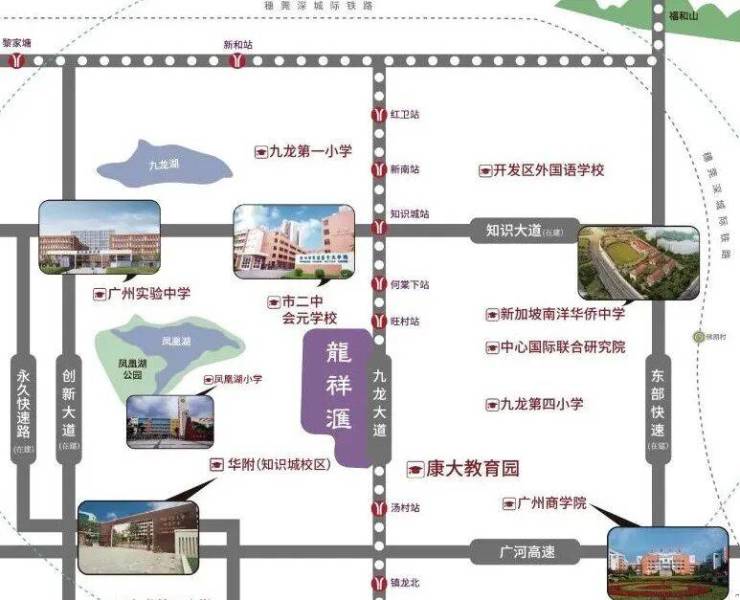 交通方面:康大龙祥汇横跨地铁知识城支线“旺村站”及“汤村站”,从项目出发换乘地铁21号线快线,最快4站即达天河;