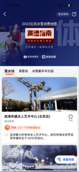 为了让广大消费者安心参与冬季运动,市民抵达入选“2023北京冰雪消费地图”、“2023北京健身消费地图”中推荐的运动场所时,可以看到由北京市体育局和高德地图联合颁布的“高德指南 冰雪消费地图”、“高德指南 健身消费地图”挂牌。