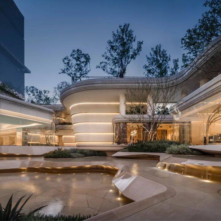 从社区花园到空中花园悬浮花园让墙外的喧嚣消弭于无形,极大地增加了园区的私密感。从平面景观到立体园林师法“九溪烟树”溪谷,以多层多维的立体造景手法,引导园林与人的交互。