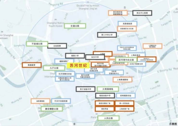 项目地处600亿+上海最大城市文保赋新石库门商业街区,尽揽河岸约50万平方米历史保护建筑。项目东侧为著名历史保护建筑四行仓库,同时周边有OCAT当代艺术馆、UCCA尤伦斯美术馆等,上海城市简史的缩影。