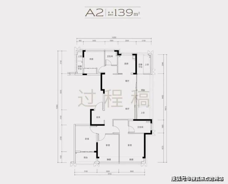 170方户型,是南厅139方户型的放大款,次卧多了一个套房空间。