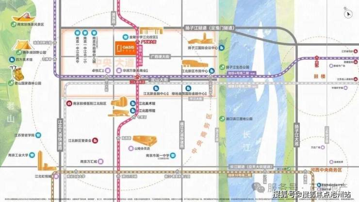 位于江北新区核中核,浦滨路和广西梗大街交汇处;紧邻【11号线】广西梗大街站(在建);近邻【4号线】江北商务区站(在建);距未来黄金主轴一一定山大街(预计2026年开街)直线距离仅约500m;