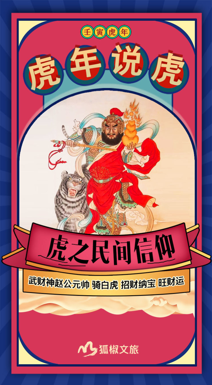 虎是百兽之王,至刚至阳。在传统文化中,虎被认为是驱邪避祸的祥瑞,又因虎与“福”、“富”谐音,于是又有了“福运”和“富贵”的寓意,所以在民俗和艺术作品里,总少不了老虎的形象,就连古代神话传说中的神明们,也喜欢与虎相伴。