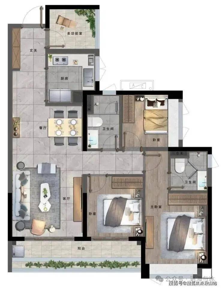 B户型 建面约102㎡ 3房2厅2卫