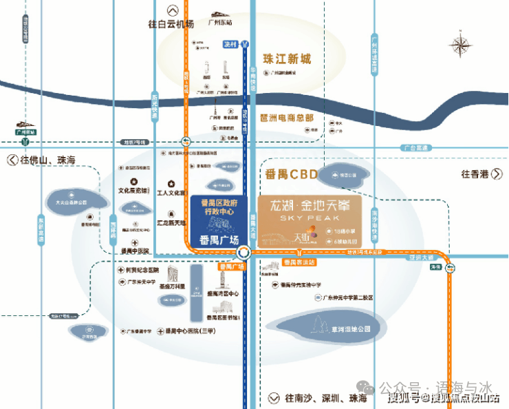 龙湖·金地天峯项目傲占番禺行政中芯,坐拥3大核心商圈、5大文化馆配套,周边三横五纵五轨交汇,由龙湖、金地双千亿房企联手打造、继珠江新城、琶洲后的又一城市轴心·TOD都会大城。