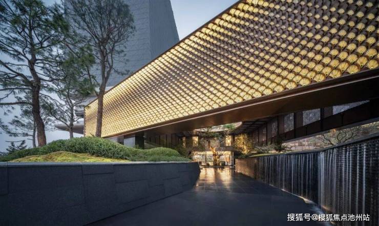 约62米“凤翎华章”门头,由3660片金属鳞片匠造而成,区域罕见的高规格艺术门头;13米赤松、300年树龄铁冬青等名贵苗木错落排布,勾勒出桃花源般的诗意入口。创新打造“门园一体化”,“可游、可观、可赏”将整座东方园林前置社区前场,归家第一步便是沉浸式游园体验。